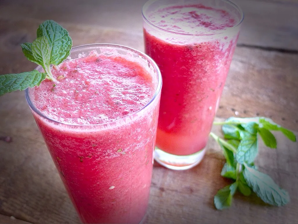 It seems I'm on a bit of a watermelon kick. This happens from time to time. I've been known to sit down with a whole watermelon and eat it entirely in that one sitting. (It's quite impressive actually). So yeah… when I crave it, I CRAVE it. Anyway, today I wanted to share this watermelon and mint juice with you. It's simple, delicious, and for the many of us out there still trying to get back into the swing of things, a great detox and energizer. Cheers!