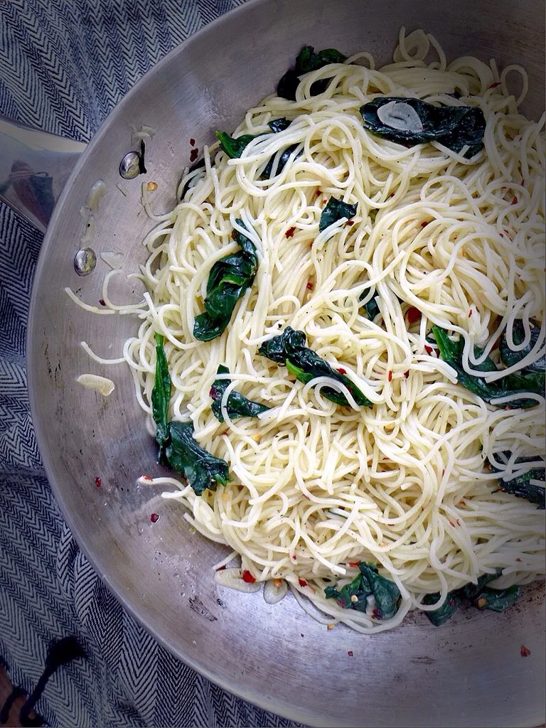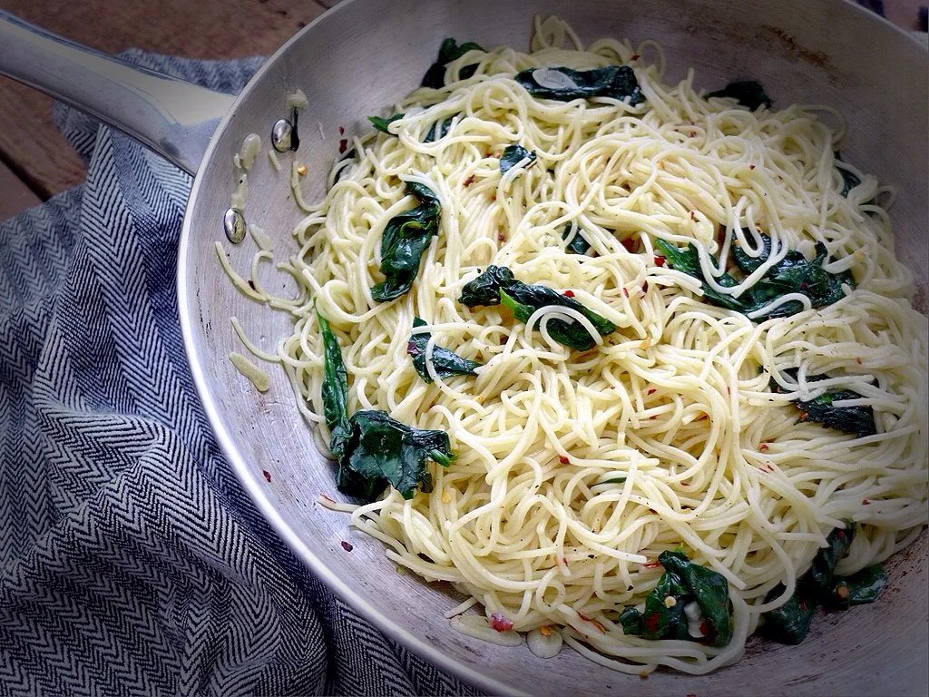 Spinach & Garlic Capellini with Red Chili Pepper Flakes