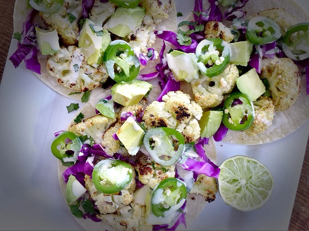 Roasted Cauliflower Tacos with Garlic Aioli Sauce