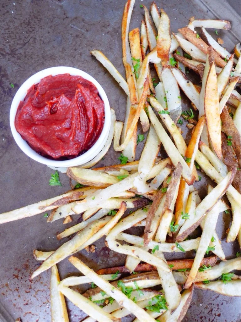 Roasted Garlic Fries with Homemade Chipotle Ketchup